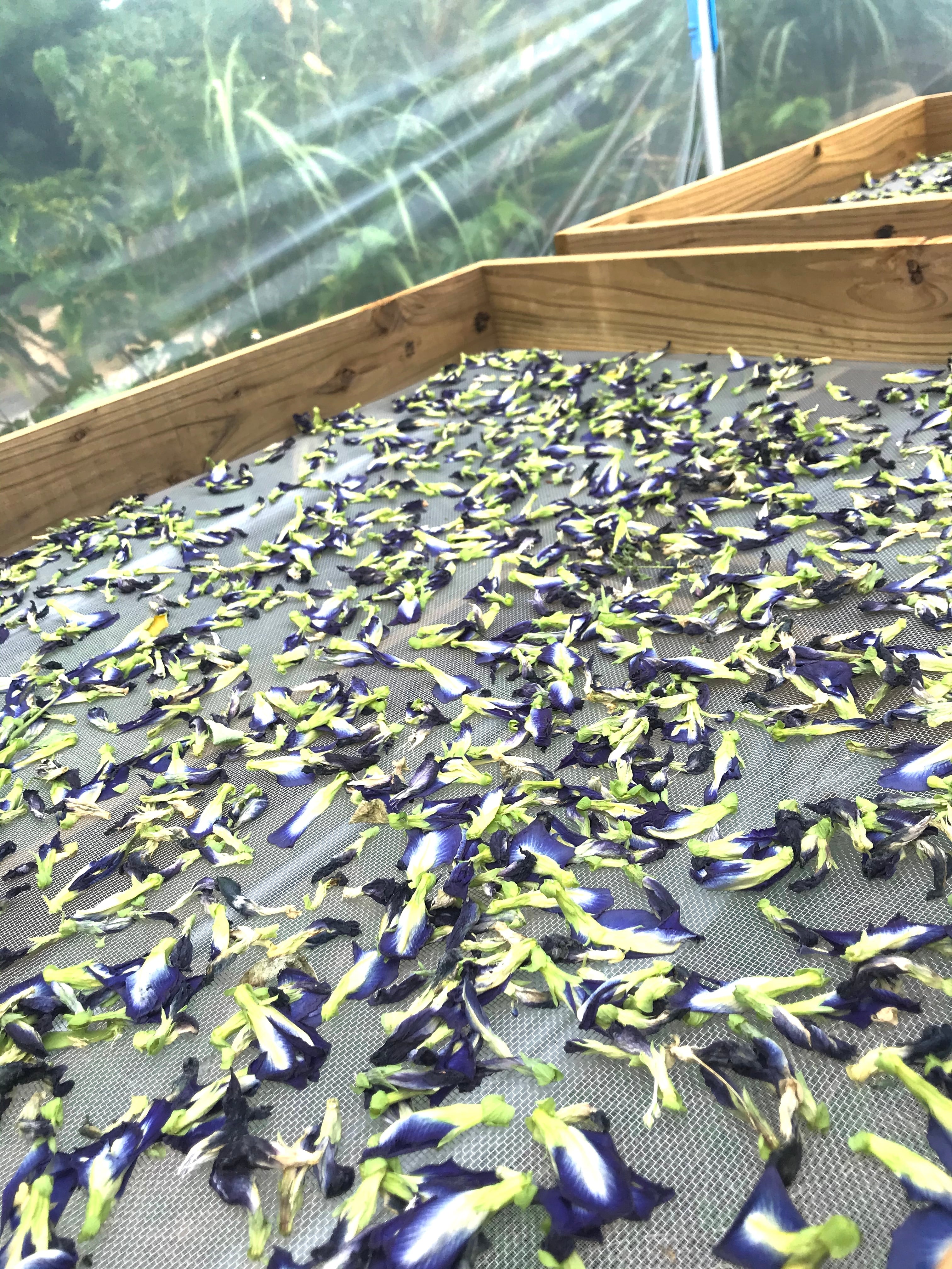 沖縄の海の目の前で育ったバタフライピー は沖縄の太陽をたくさん浴び、潮風にも耐えたくましく育ちました。バタフライピー はアントシアニンがとても豊富な南国の青い花。お茶やお菓子作り、料理などなど使い方はアイデア次第でたくさんあります^_^レモンを入れると青からピンクに変わる不思議なお茶を作って楽しみませんか?